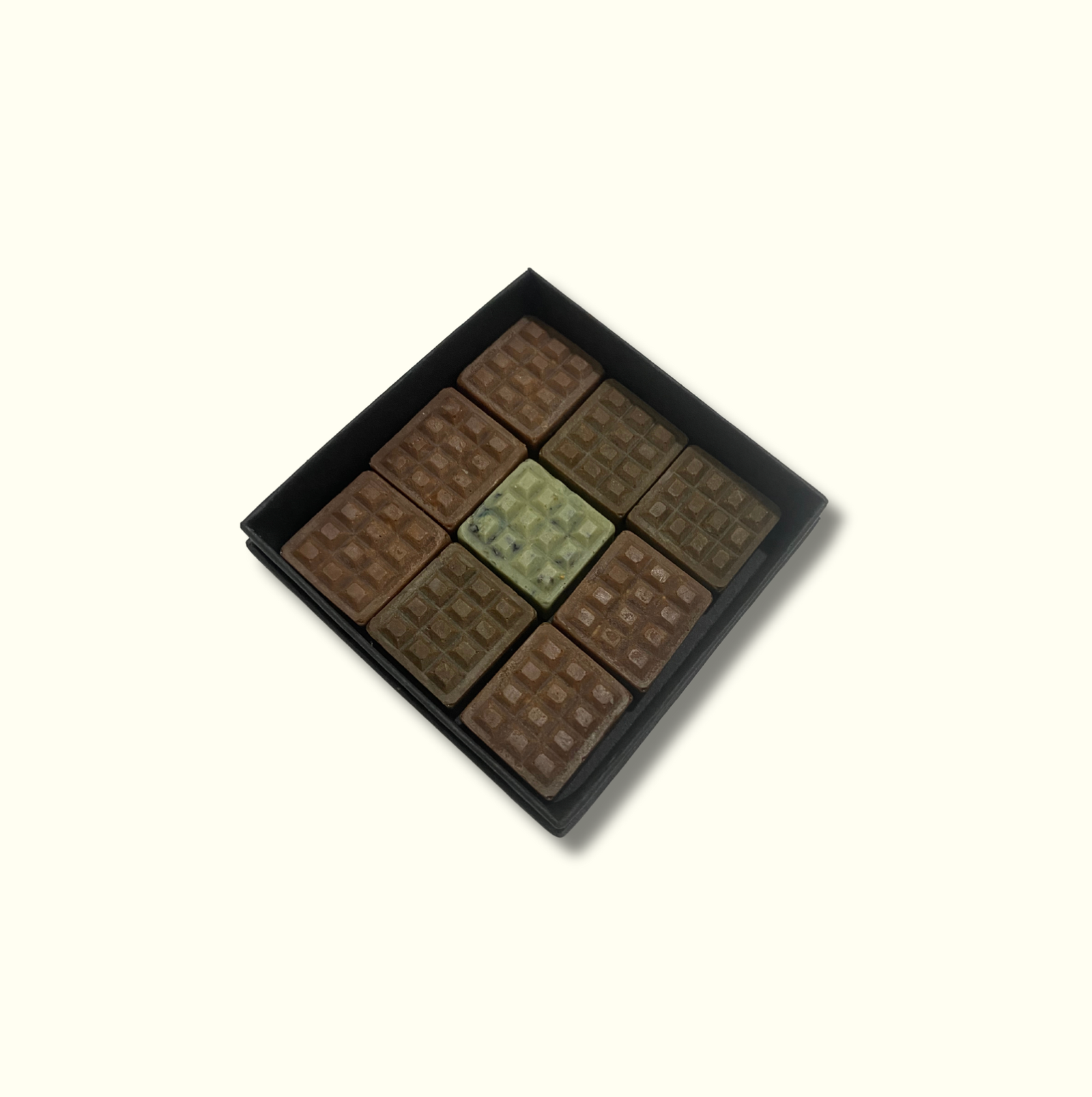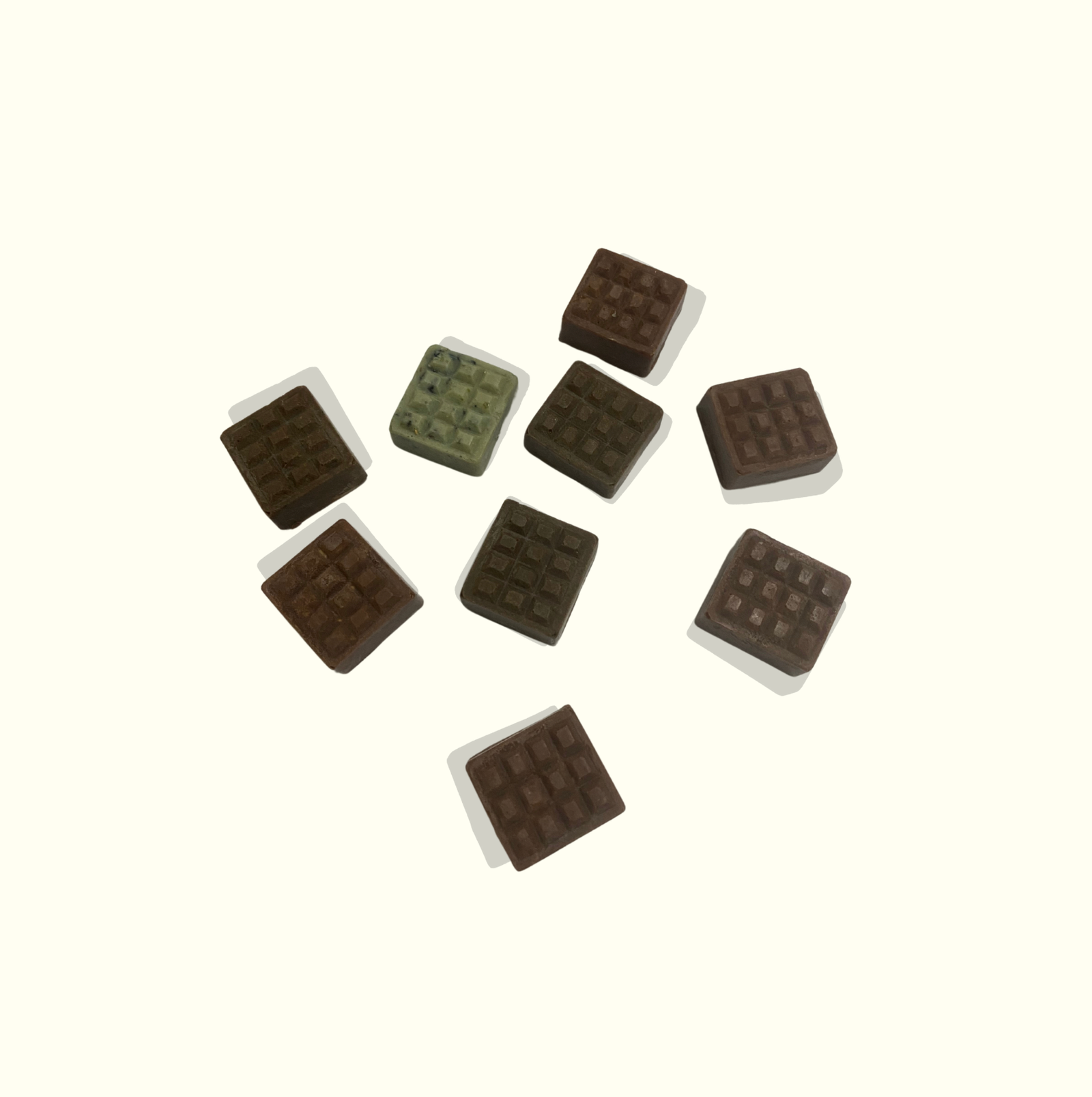 Goats milk, cacao/chocolate. -Incluye variedad de jabones de “chocolate con leche y chocolate amargo” Kit de jabones individuales con aroma a chocolate. Ideal para llevar en la bolsa y tener a la mano ante cualquier imprevisto. ¿Tus hijos no quieren lavarse las manos? estos jabones podrían hacer la diferencia.